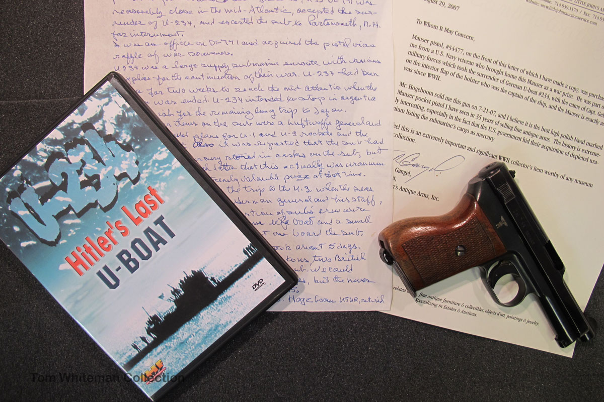 This is a 1934 Mauser that was captured from Captain Fehler of U-234. This U-Boat was carrying Uranium that would later be used in the Hiroshima A-Bomb.