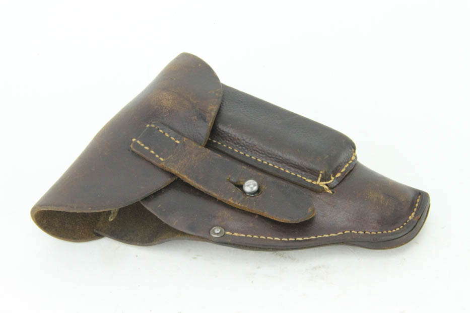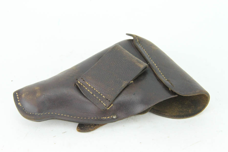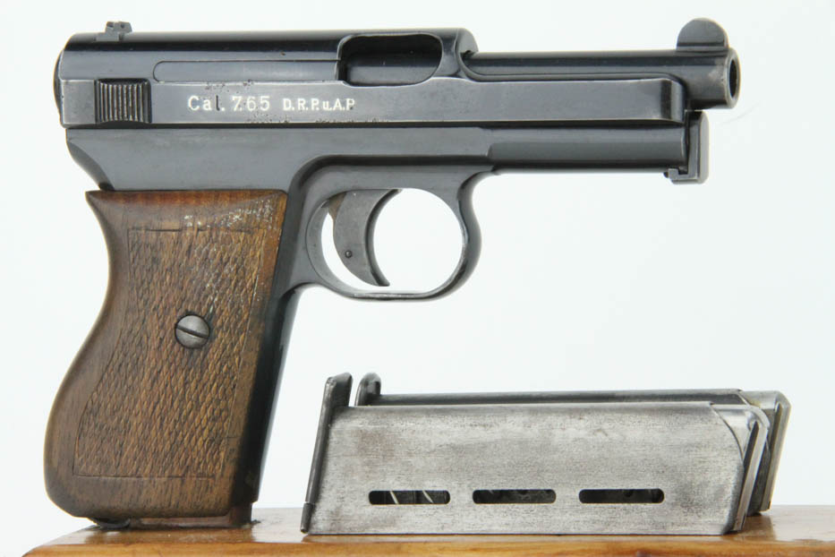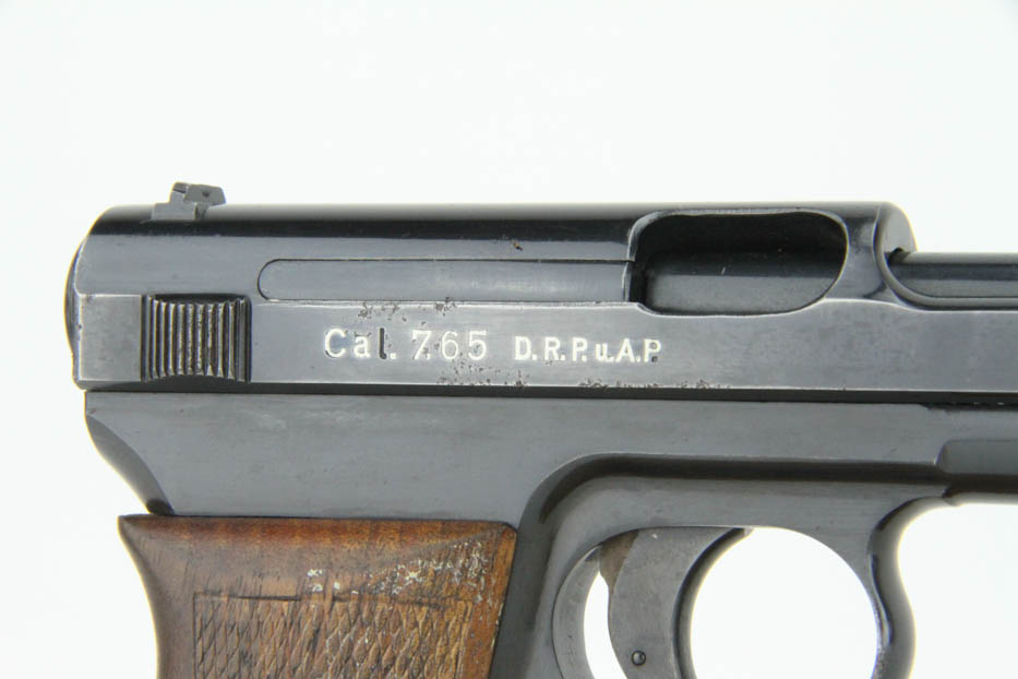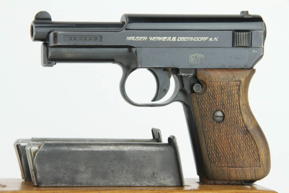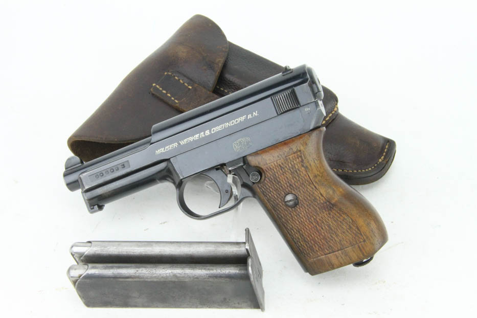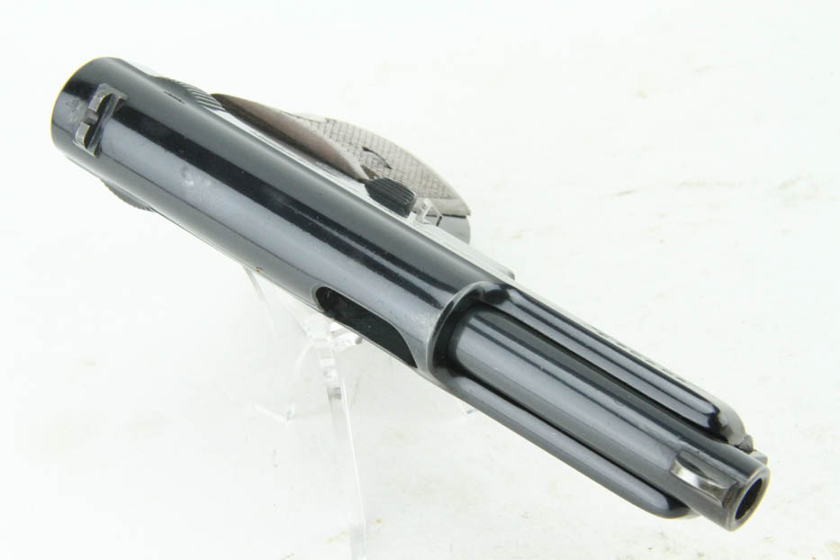 9/3/24 – This is an excellent example of a scarce Mauser Model 1934 issued to the Nazi army during WW2. It was made around 1940. Only about 8,000 of this variation made. All matching with the proper Eagle test proof and “Eagle 655” military acceptance proof on the left side of the tang. It comes as a rig with a WWI-era holster (fits the gun well), one proper magazine, and a spare magazine that is actually for a Mauser Model 1914. The gun has retained about 96% of its original high polish finish. Minor wear around the muzzle and around the high edges. A small area of pitting on the right side of the slide. Fitted with a very nice wood grip. Minty bore.