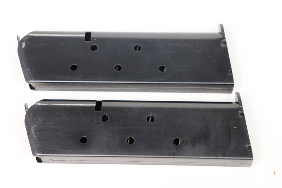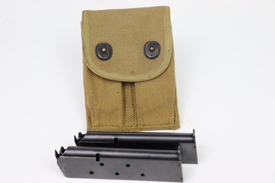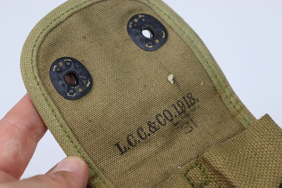 7/23/24 – This is an original example of a 1918 dated L.C.C. & Co 1911 magazine pouch. Excellent condition with no damage to original stitching. This magazine pouch comes with two post war 1911 magazines.