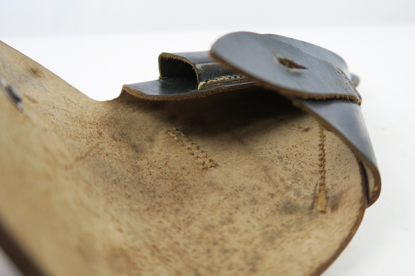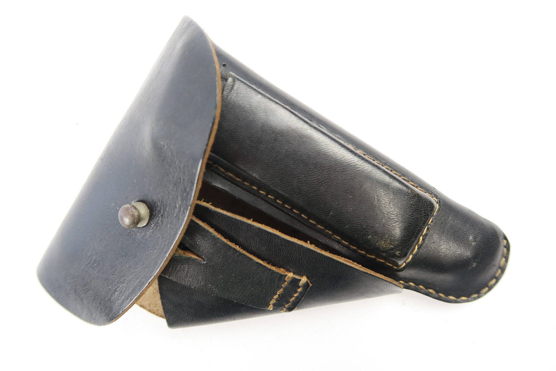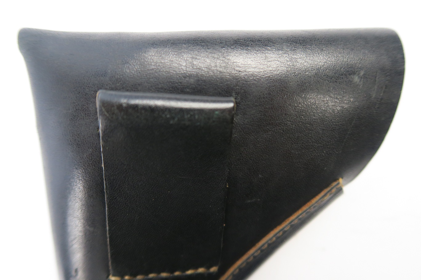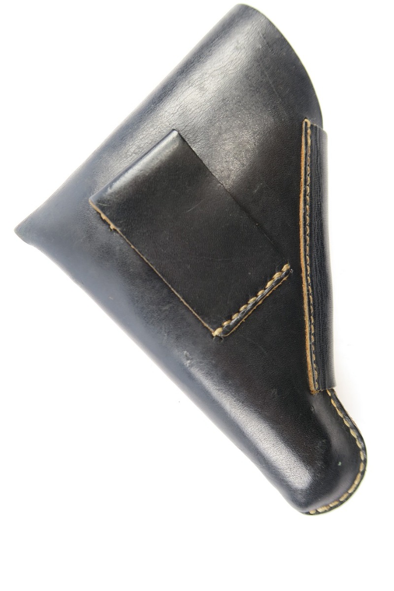 7/12/18 – This is an original WW2 production holster for a Mauser HSc. Would also fit similar 7.65mm pistols like the PP or 38h. The holster has excellent, clean leather and all original stitching in tact. The interior leather has a faint ink stamp “ftt/44”. Guaranteed original.