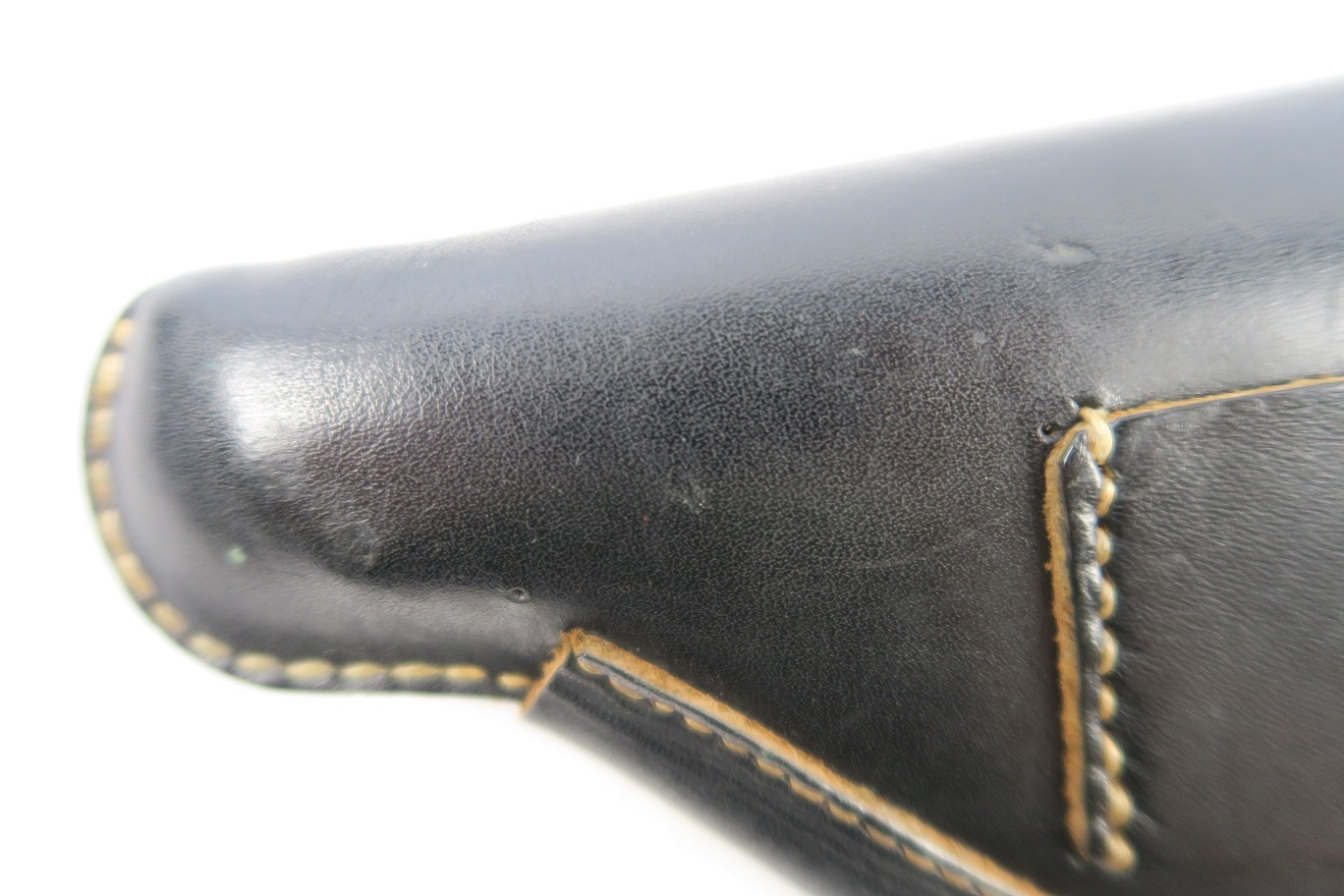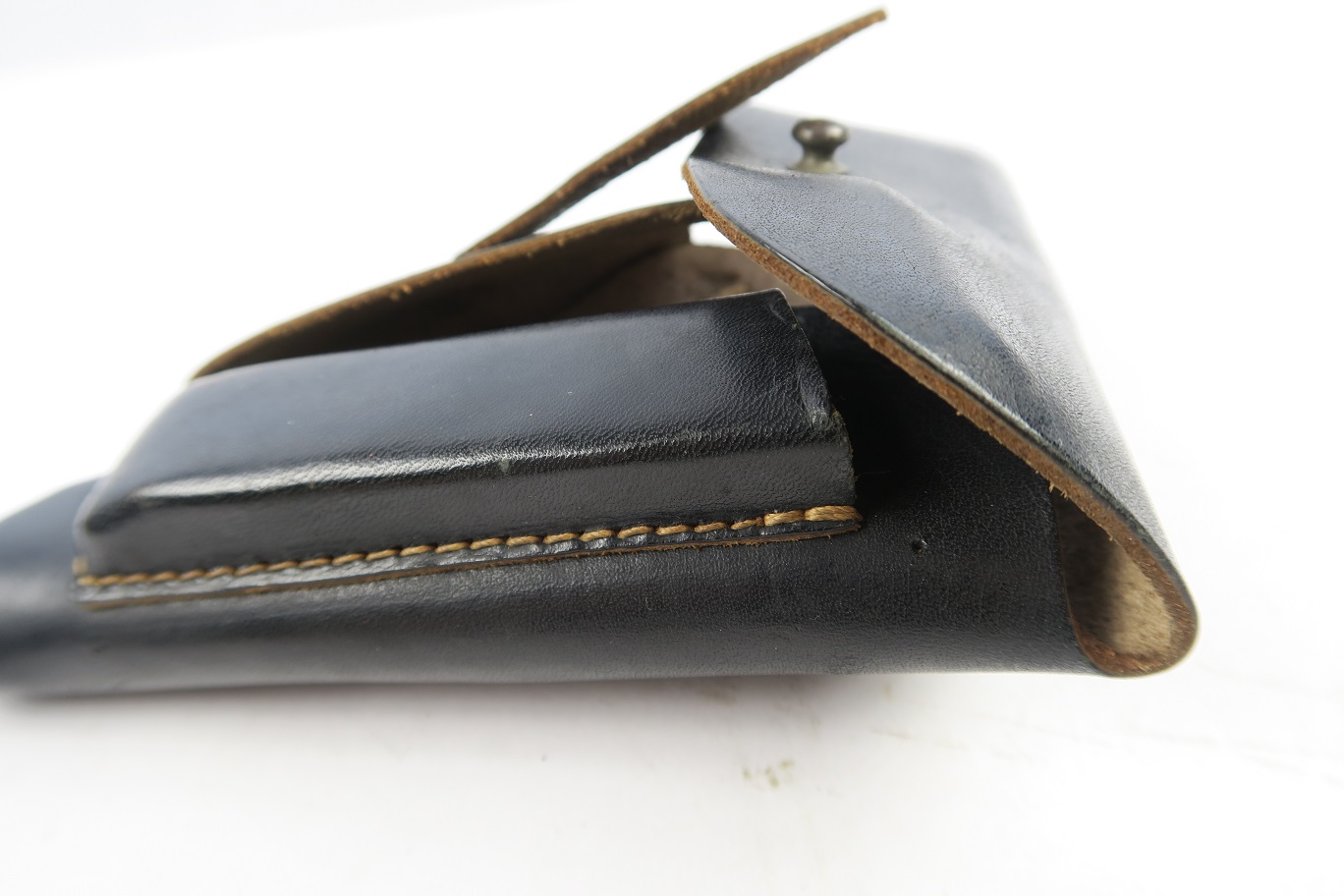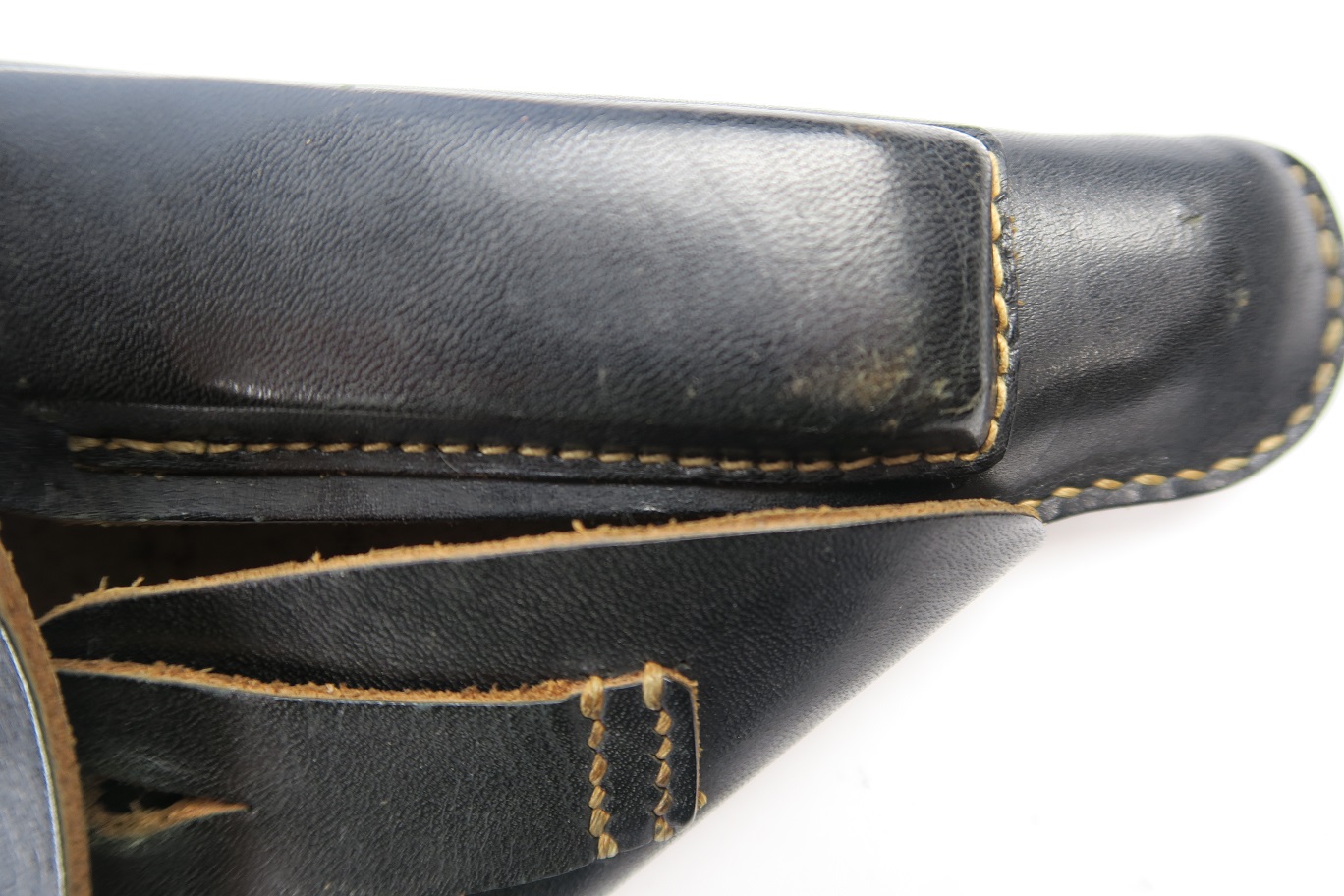 7/12/18 – This is an original WW2 production holster for a Mauser HSc. Would also fit similar 7.65mm pistols like the PP or 38h. The holster has excellent, clean leather and all original stitching in tact. The interior leather has a faint ink stamp “ftt/44”. Guaranteed original.