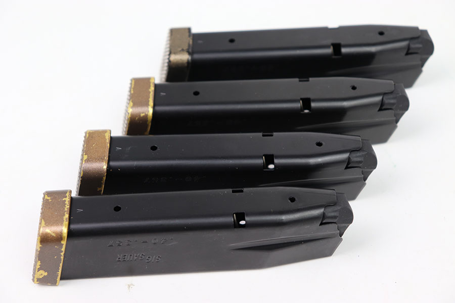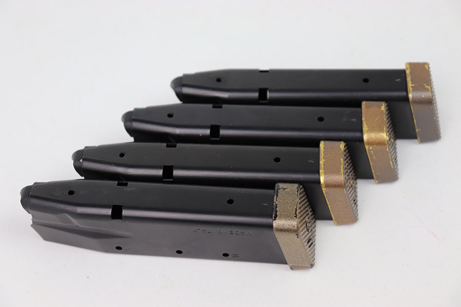 5/15/24 – Four Sig Sauer P320 14rd magazines with Henning Group Pro Series Base Pads aluminum base pads. The base pads have some chipped finish but the rest of the magazine is in excellent condition.