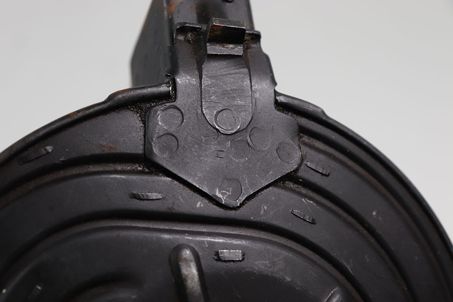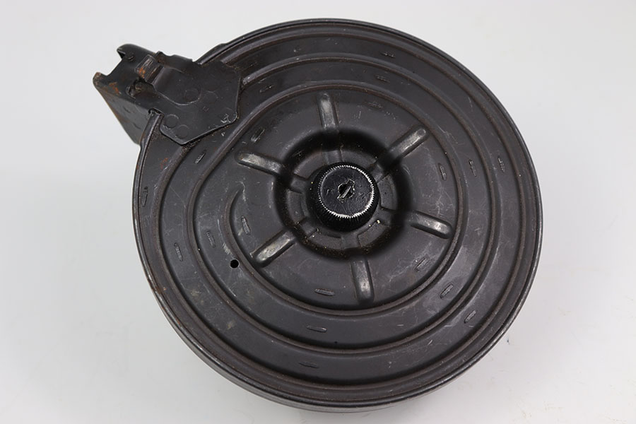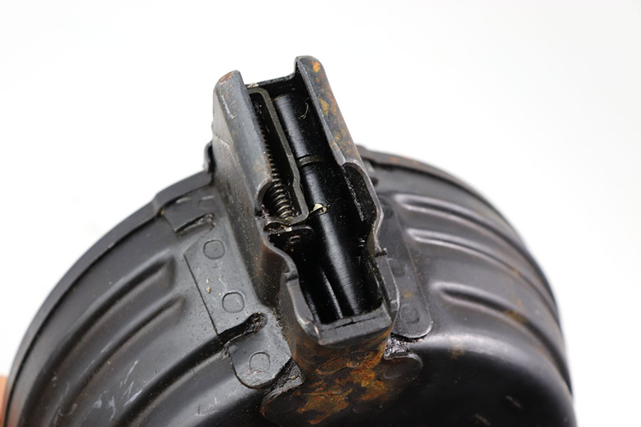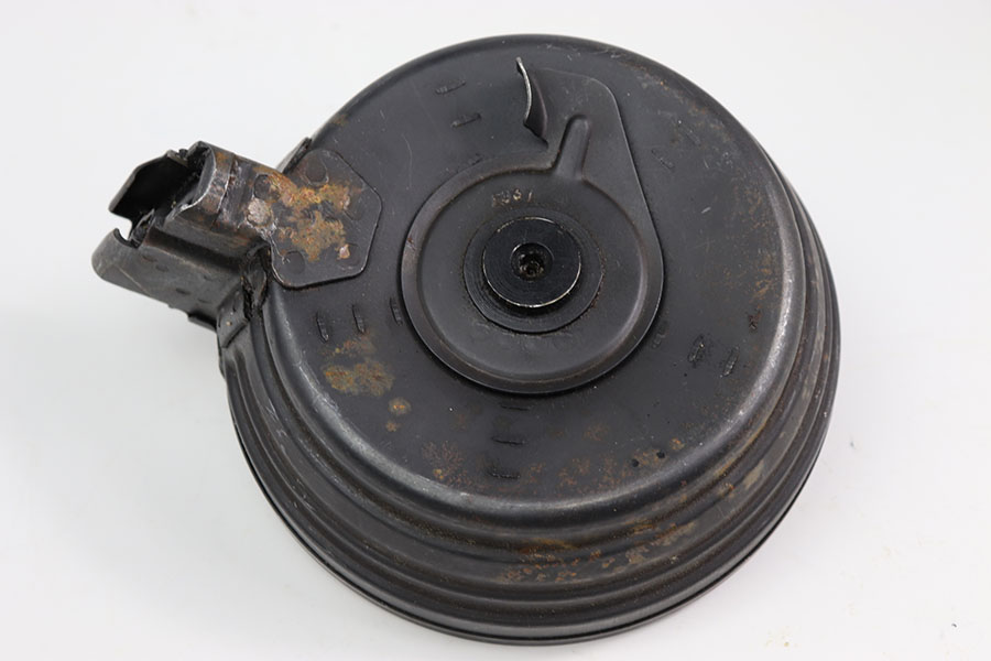 9/17/24 – This is an original Russian or Romanian 75 round drum magazine for an AK-47. These drum magazines are high quality compared to some of the aftermarket drum magazines available on the internet. Marked on the front side with, “E937.” Some typical patina and signs of aging.
