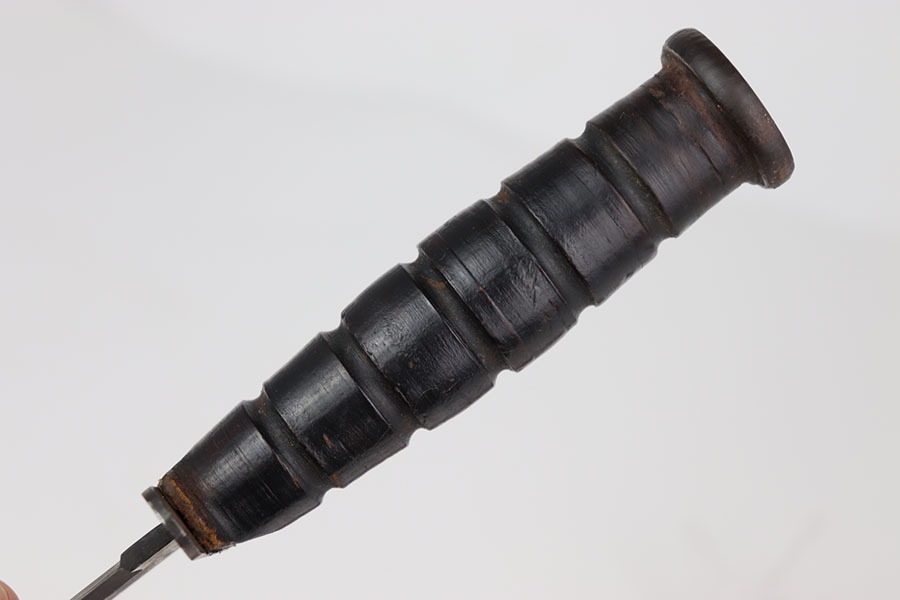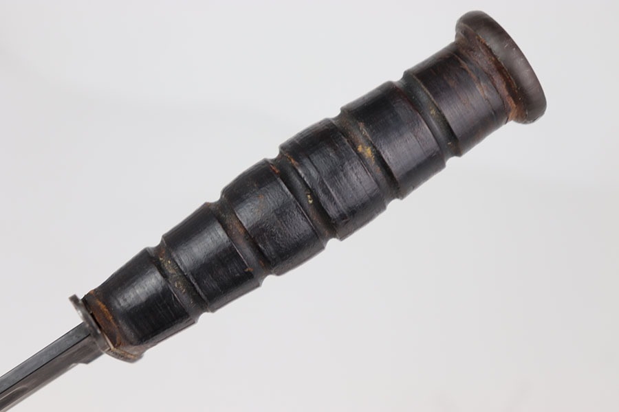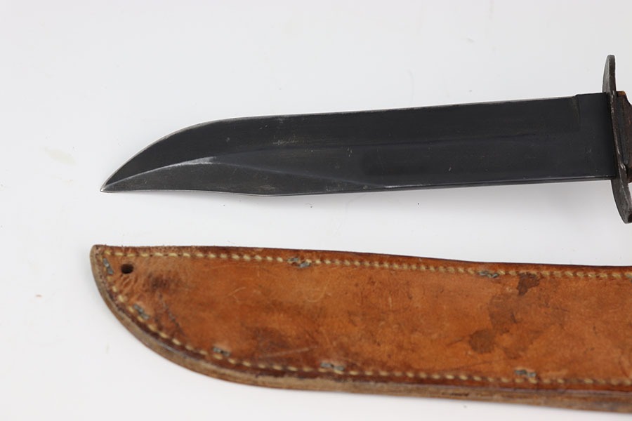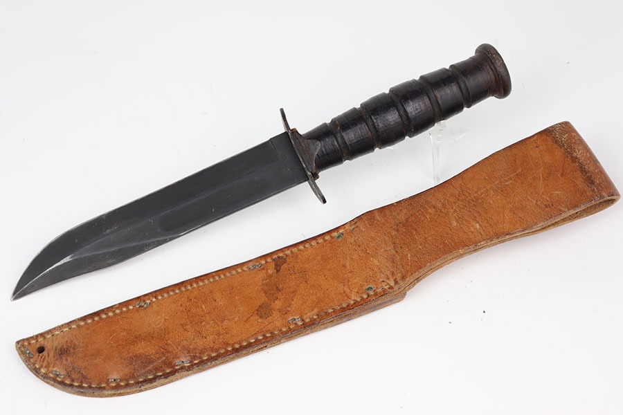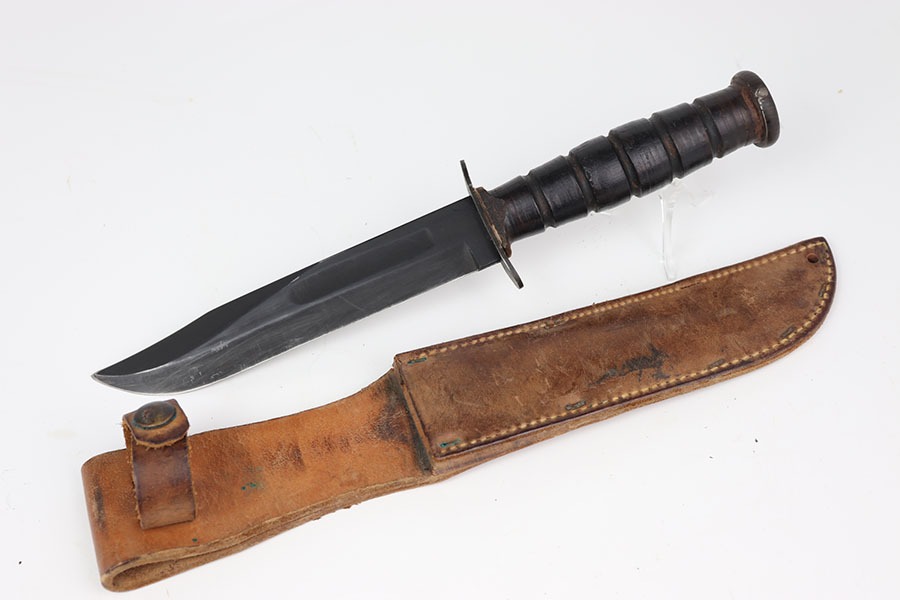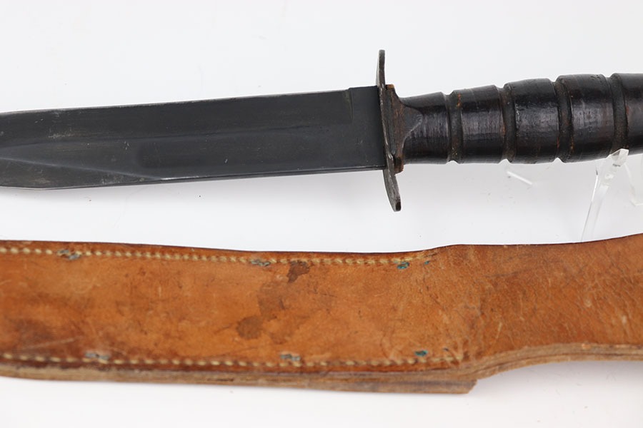 10/23/24 – This is an original Camillus MK2 U.S.M.C. fighting knife. It comes with the original leather sheath. The guard is marked U.S.M.C. Overall excellent condition with factory edge.