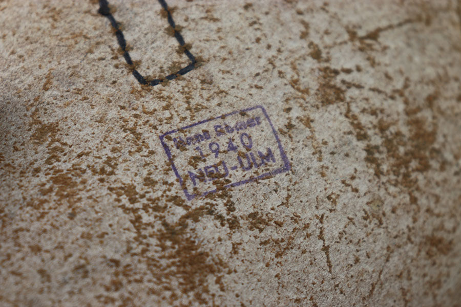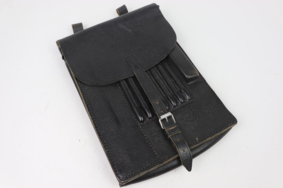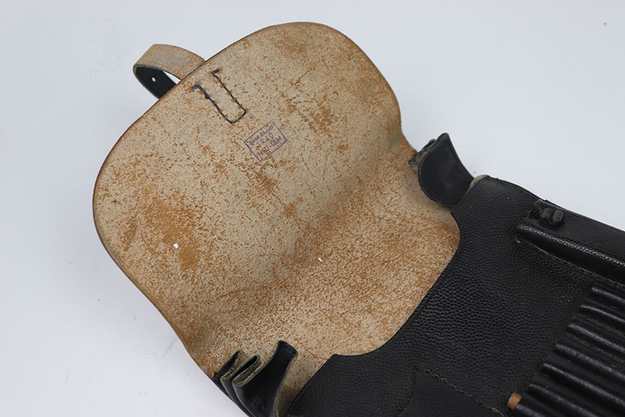 7/17/24 – This is an reproduction map holster with map. This holster is in minty condition with almost no signs of use. The holster is ink stamped on the inside of the closure flap with its maker and date 1940. The holster comes with a map that is unmarked. Below the date it is marked with Neu-ulm which is a town in Germany.