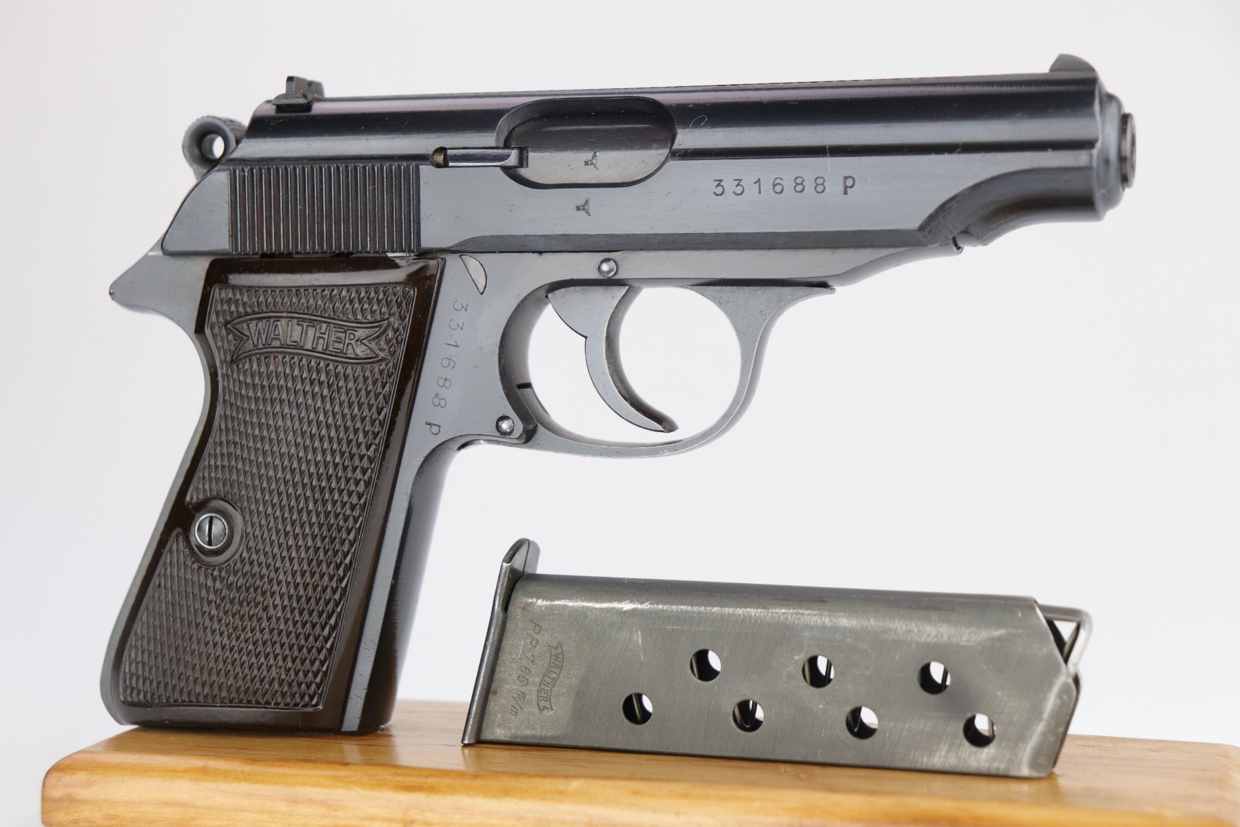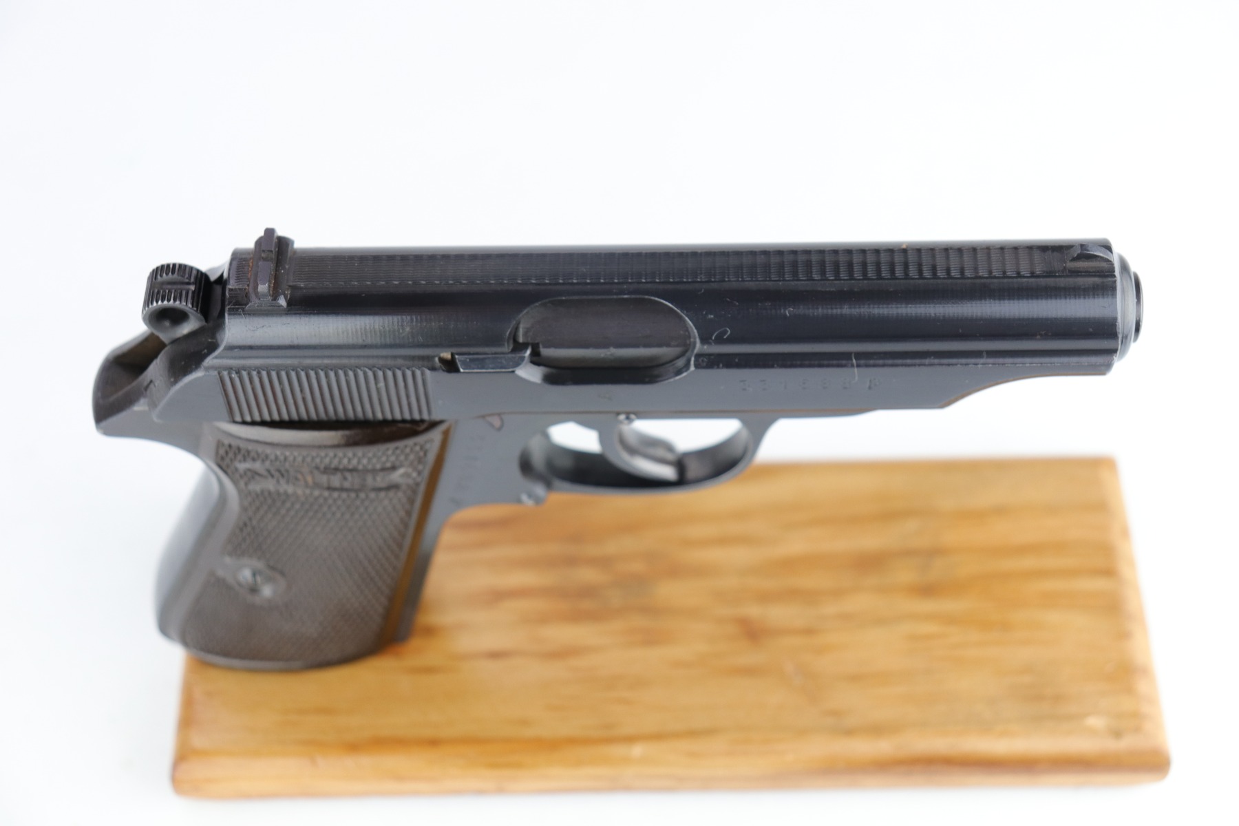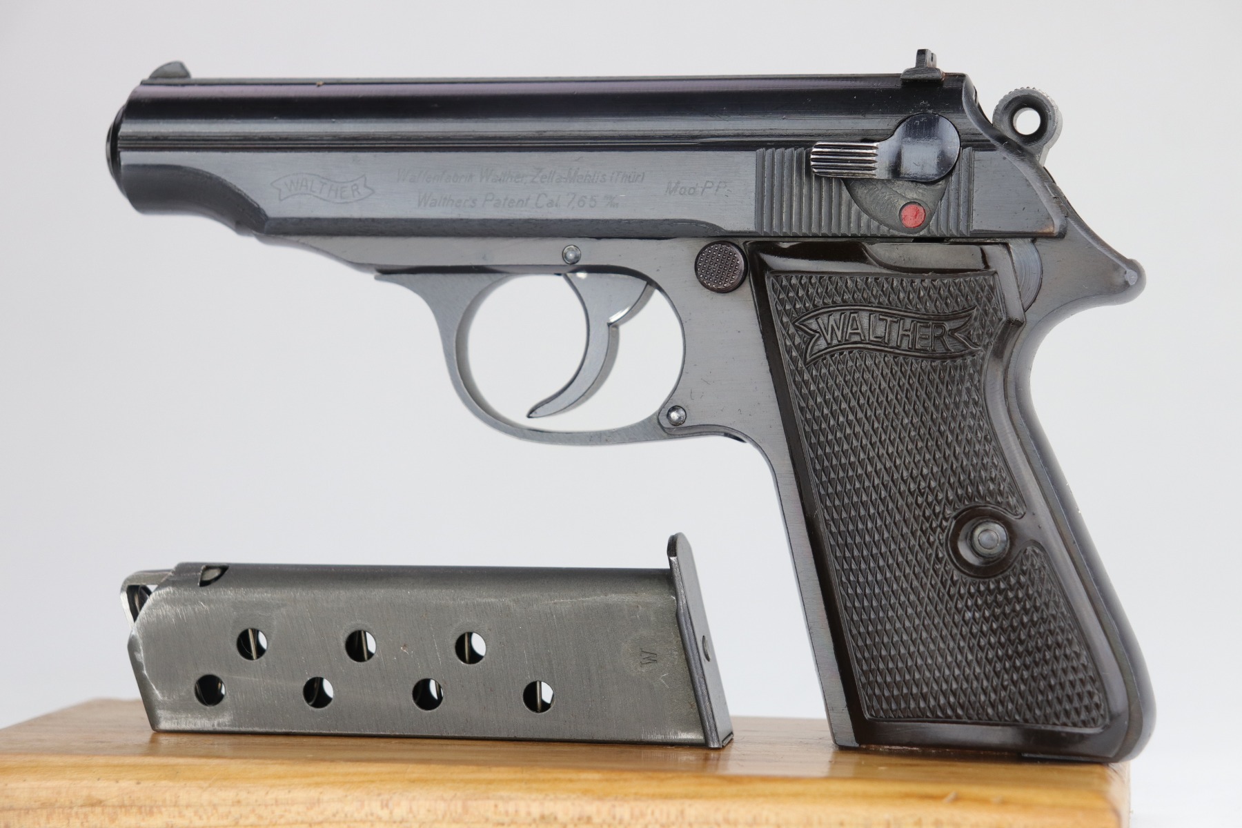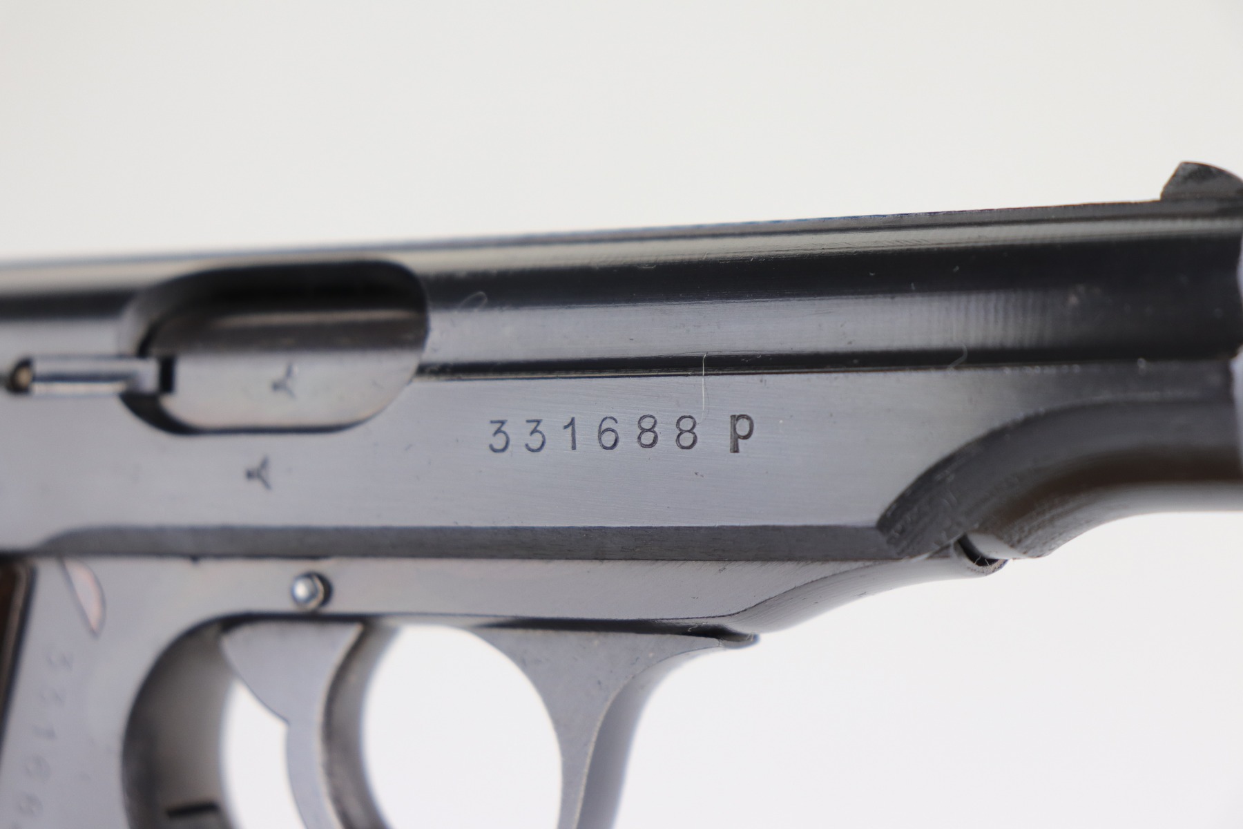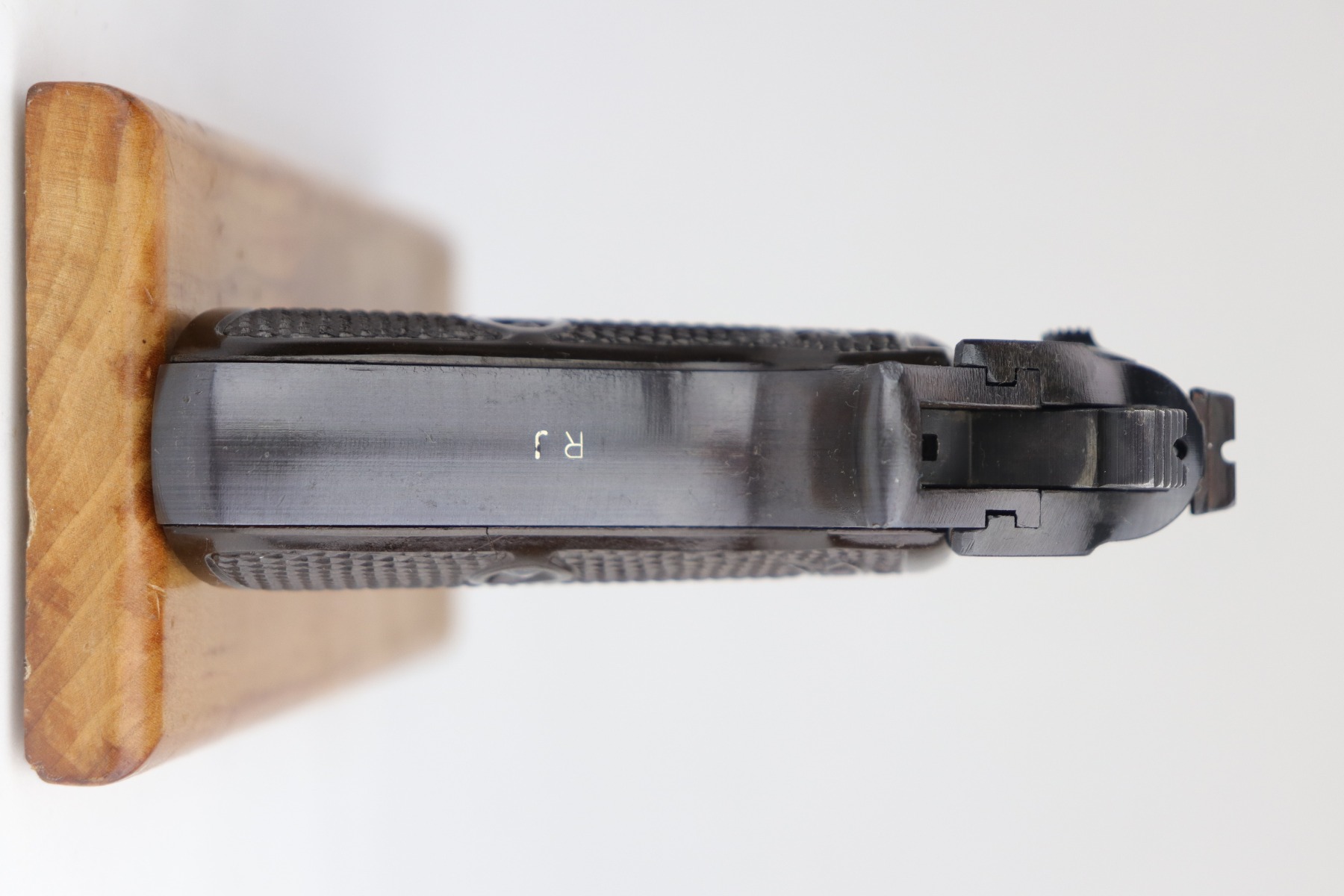 3/6/20 – This is a pair of consecutively numbered Walther PPs with RJ marking on the frame. Not only is it rare to find consecutive serials, but these examples are marked on the back strap, and only about 10-15% of them were marked in that location. They are also both near mint condition, with hardly any finish loss on either pistol. The lower serial does have a lanyard ring on the frame. Both have mint bores, excellent grips and correct magazines. Unlikely to encounter another pairing quite like this any time soon.