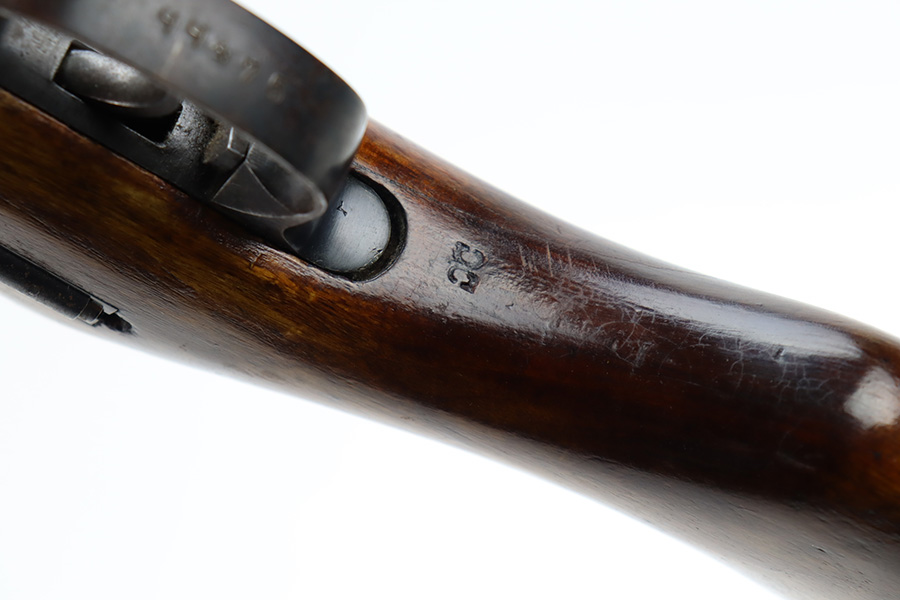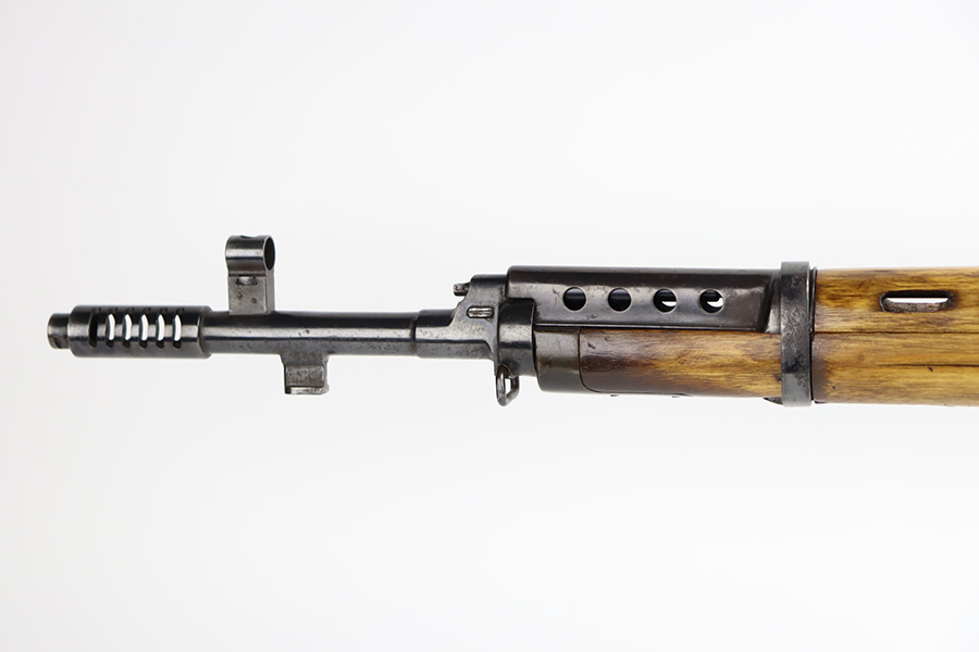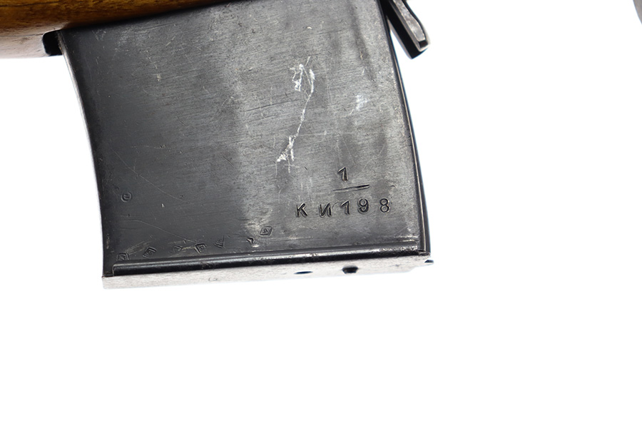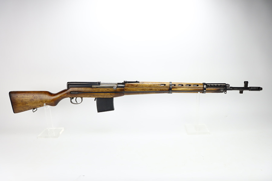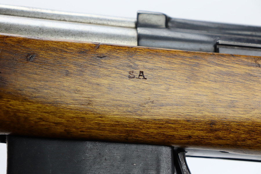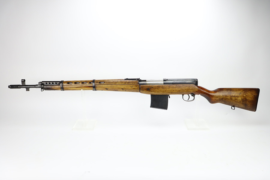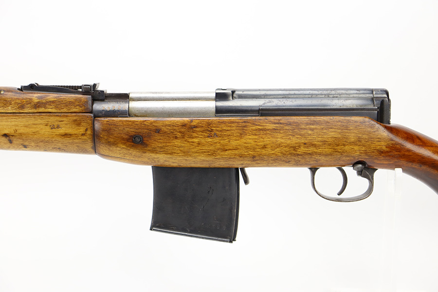 11/30/23 – This SVT-38 semi-automatic rifle was manufactured by Izhevsk arsenal in 1939. The Tokarev rifles were manufactured throughout World War II by both the Tula and Izhevsk arsenals, although these earlier SVT-38 models are less commonly encountered today than the SVT-40 that superseded it. Approximately 150,000 SVT-38s were reportedly manufactured before April of 1940 as opposed to 1,600,000 SVT-40s manufactured. But as far as surviving examples in the states go, especially non-import examples like this one, the survival rate is extremely low. The SVT-38 rifles were rushed into service to see their initial combat use in the Winter War (November 30th, 1939-March 13th, 1940) in which the Soviet Union attempted to invade Finland. The short-lived SVT-38 was used with limited success, with many dropped on the snow covered battlefield and many others captured by Finland; in part due to its tendency to jam as well as issues with the magazine falling out during live fire, which was corrected in the SVT-40. Receiver shows the 1939 date with Tula star logo. Matching numbers on receiver and stock but mismatched on trigger guard, magazine and bolt handle. SA marking on receiver indicates later Finnish capture. Excellent bluing overall but minor wear on the trigger group. Bore has strong rifling but frost throughout. Stock is also SA marked and is in great shape with no notable defects.