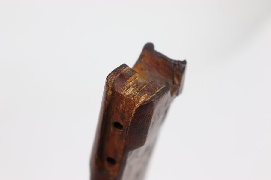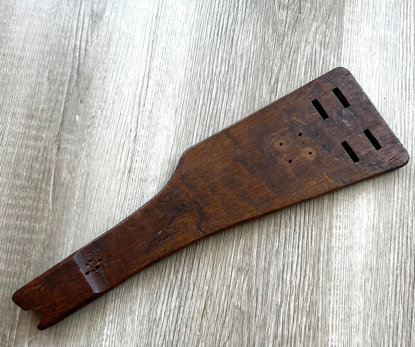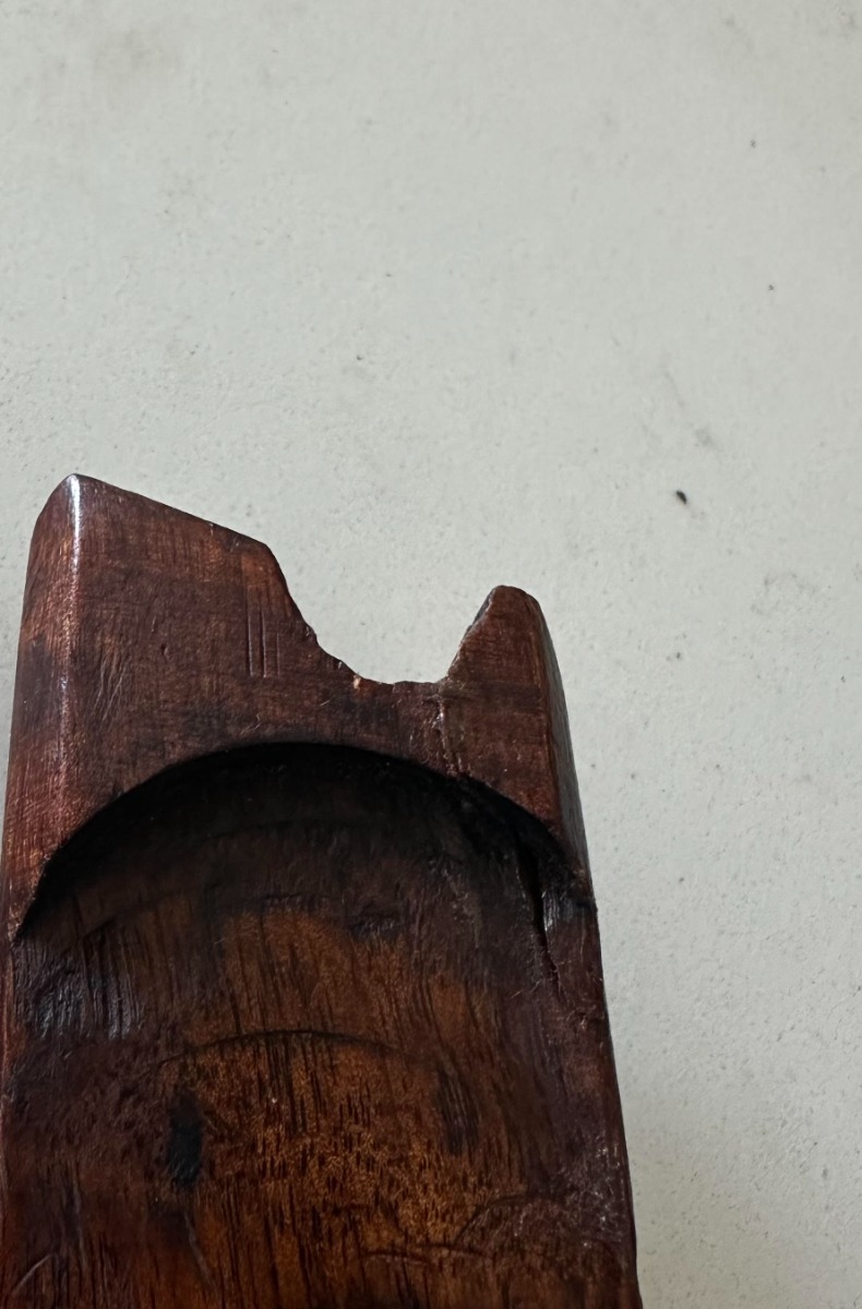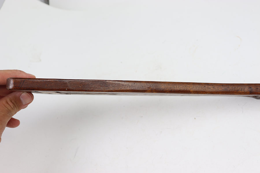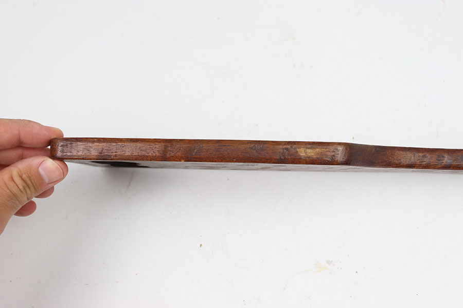 8/2/24 – This is a completely unmarked artillery luger stock that is missing its metal components. The stock is in good condition with only mild signs of wear. Seen in the last photo you can see a piece was broken off but repaired fairly well and holds strong.