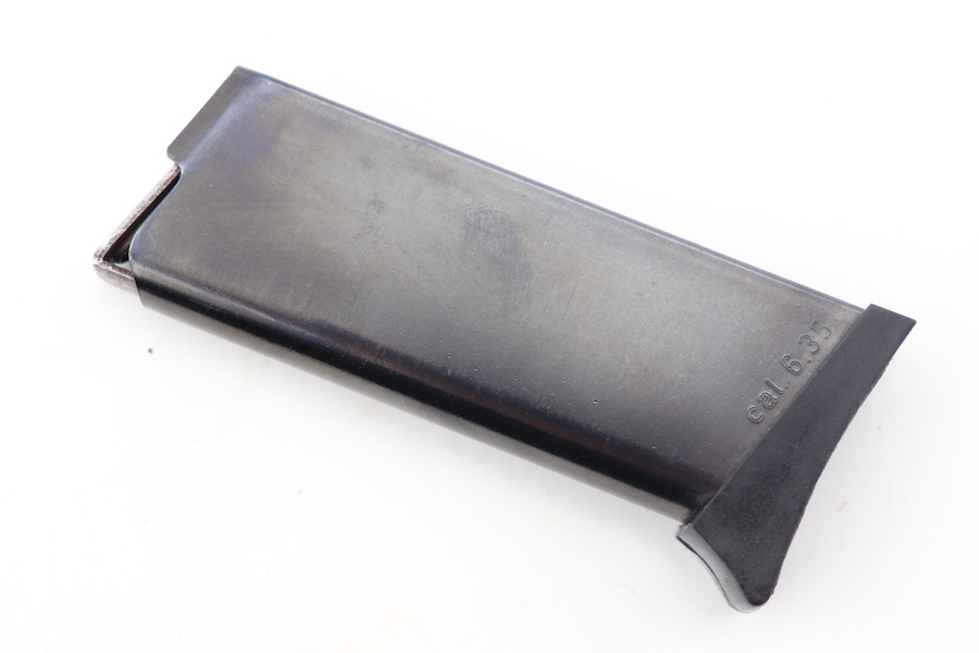 2/6/24 – This is an excellent condition Walther TPH magazine in 6.35mm. This magazine retains nearly all of its original bluing finish. The spring is smooth with excellent retention. Walther banner is displayed on the bottom right side, and 6.35mm is on the left side.