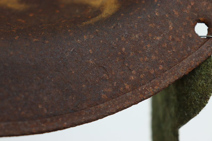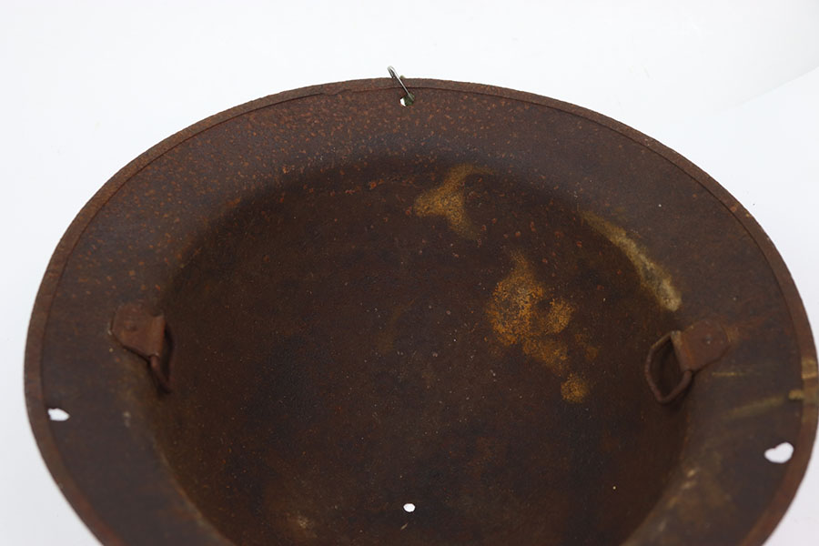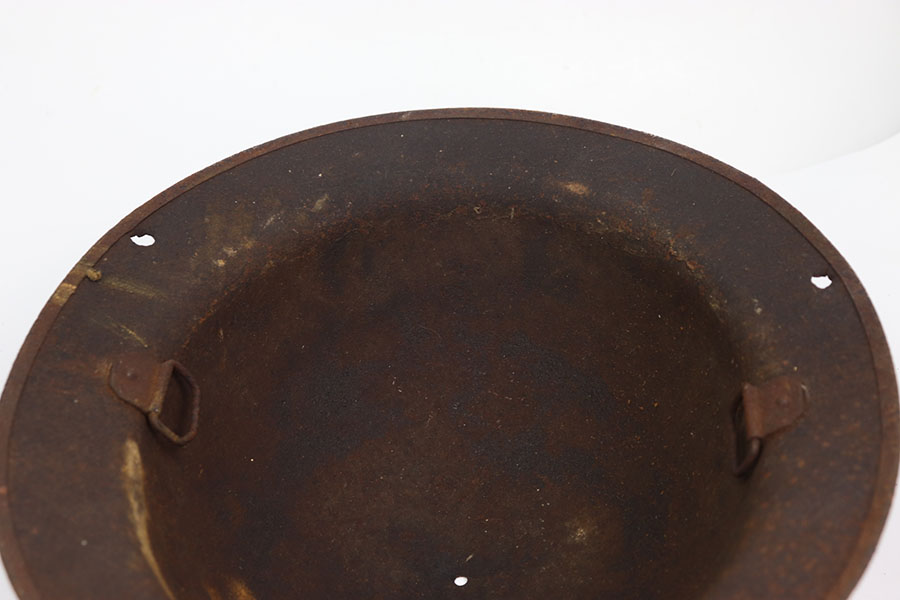 7/25/24 – This is a very cool original WW1 era 91st infantry M1917 Helmet that has its original ink stamp on the front. This helmet is in great shape given its age. Has a consistent patina throughout. No deep scratches, dents, or severe pitting. The inside rim is stamped but is difficult to make out what it reads. Comes with no internal liner but has its original metal rings that the strap would attach too. Comes with patch.