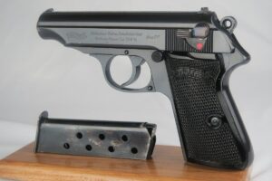 12/24/24 – This is an excellent example of a Walther PPK sold in the commercial market in 1939. It is all matching and has the proper “Crown N” proofs. The gun has retained about 96% of its original bluing. There is minor wear around the muzzle and high edges of the slide. Minor freckling around the muzzle and on the front strap. Excellent grip. The bore is minty except for some small areas of very light freckling. Comes with a finger extension magazine.
